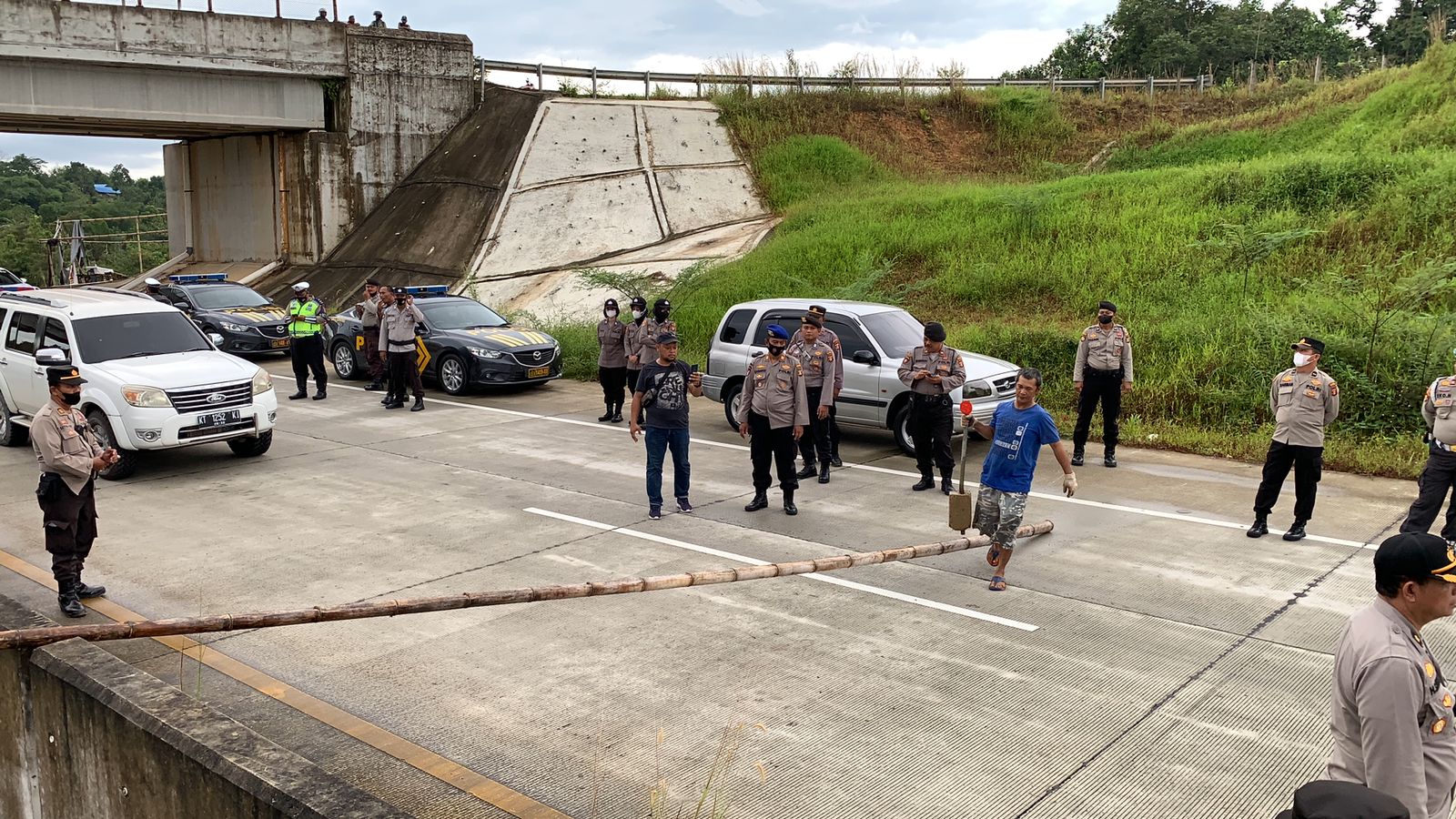 KaltimKita.com, BALIKPAPAN- Akses jalan tol Balikpapan-Samarinda (Balsam) km 6 kembali diblokir warga RT 37 Kelurahan Manggar, Balikpapan Timur, Jumat (20/5/2022) pagi. Hanya saja aksi warga ini tak berlangsung lama. Lantaran aparat kepolisian sigap membubarkan warga.