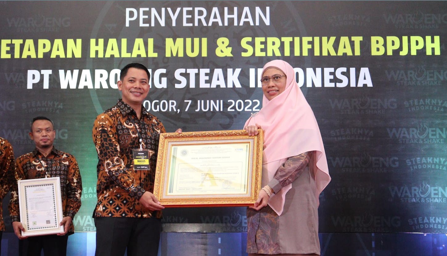 Proses penyerahan Ketetapan Halal MUI diserahkan langsung oleh Direktur Utama LPPOM MUI, Ir.Hk. Muti Arintawati, kepada Direktur Utama PT. Waroeng Steak Indonesia, Riyanto, Selasa, 7 Juni 2022. Kemudian Sertifikasi Halal diserahkan oleh Kepala BPJPH Pusat, Muhamad Aqil Irham kepada Koordinator Manajemen Halal PT. Waroeng Steak Indonesia, Heri Iswanto.