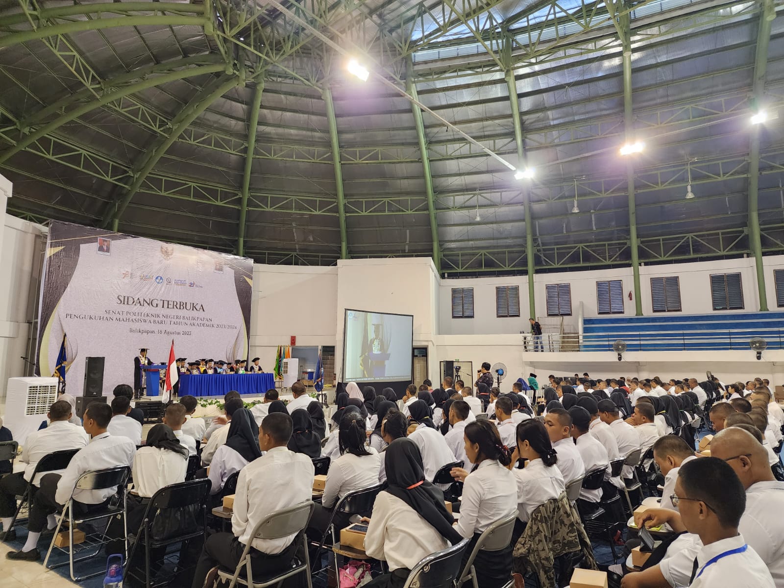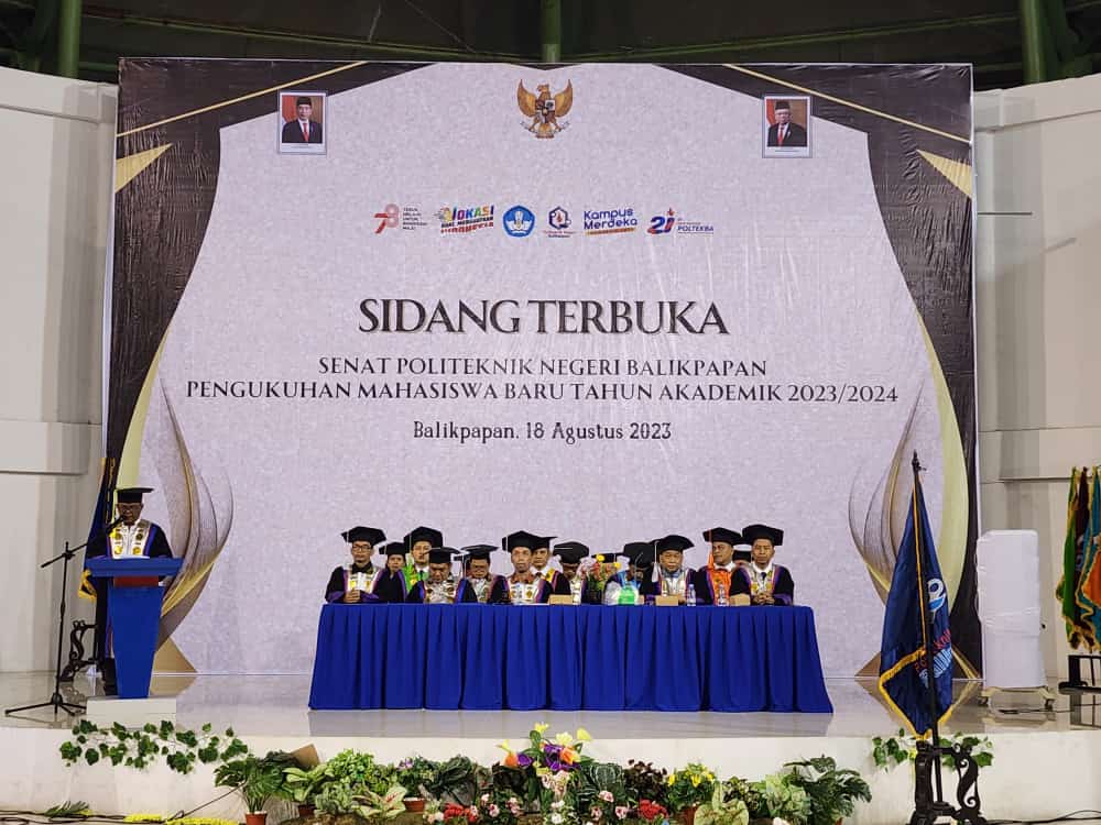 KaltimKita.com, BALIKPAPAN - Politeknik Negeri Balikpapan melaksanakan Rapat Terbuka Senat pengukuhan mahasiswa baru tahun akademik 2023/2024. Jumat (18/8/2023), total 543 mahasiswa dikukuhkan oleh Direktur Ramli, S.E., M.M.
