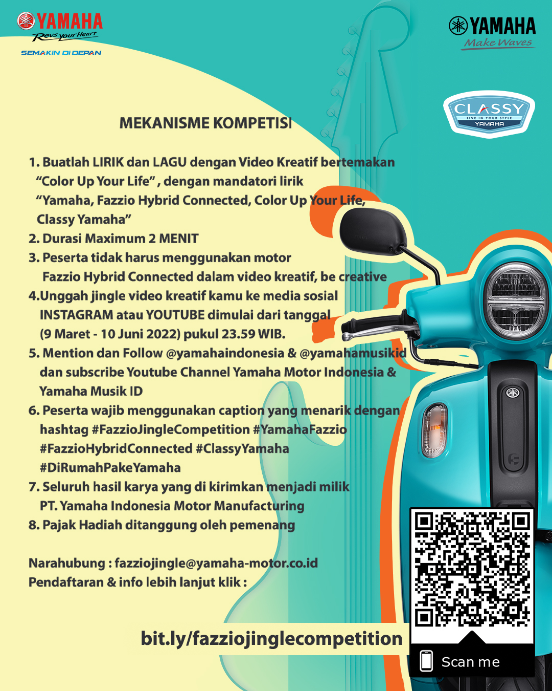 #FazzioJingleCompetition #YamahaFazzio #FazzioHybridConnected #ClassyYamaha #DiRumahPakeYamaha. (*/bie)