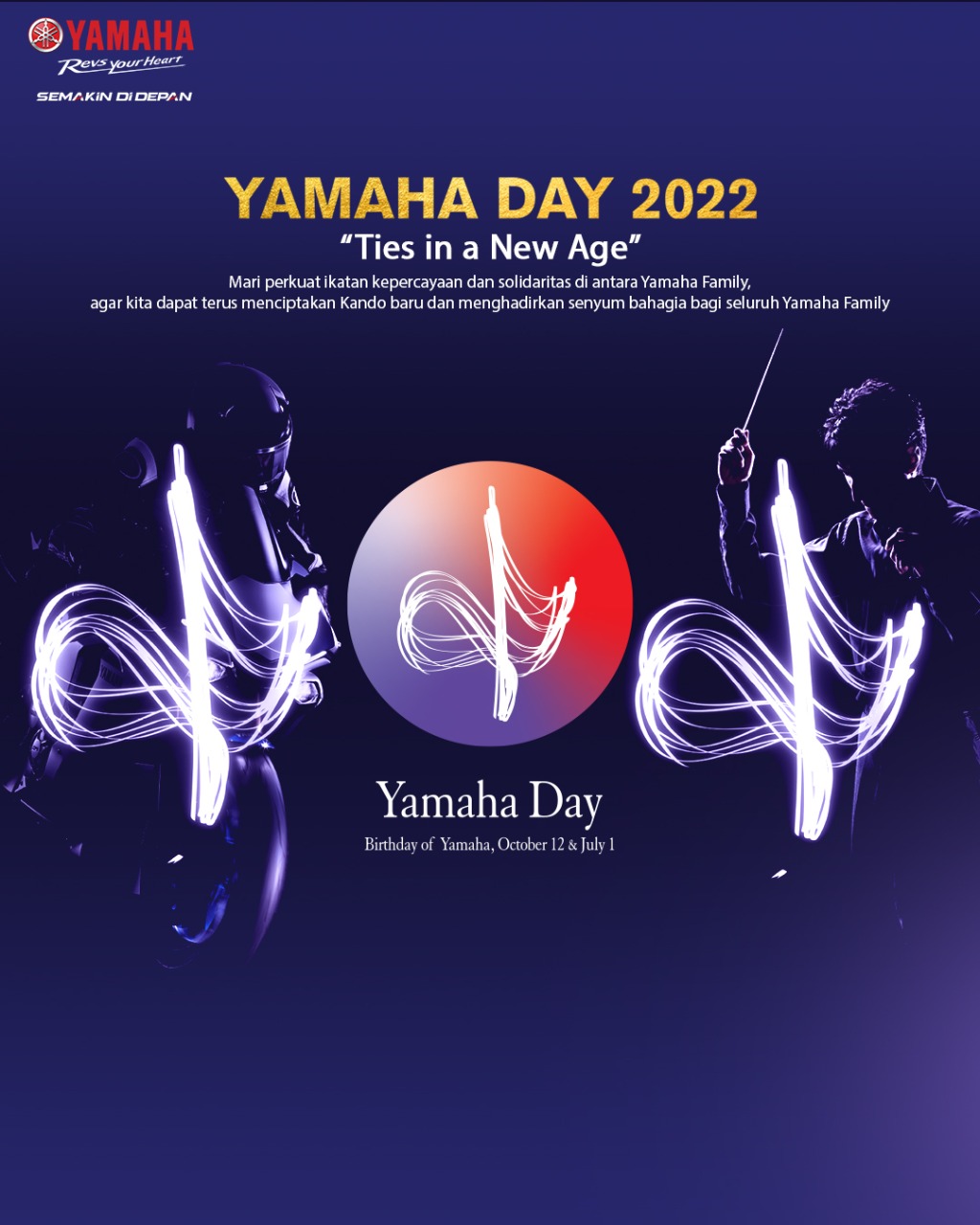”Sejarah telah membuktikan, bahwa Yamaha dengan semangat pantang menyerah dan Ties atau ikatan yang kuat, kita selalu mampu melewati masa-masa sulit, terutama dalam 2 tahun terakhir ketika pandemi melanda. Mari kita bersyukur, situasi Indonesia terus membaik, ekonomi mulai pulih dan Yamaha bukan sekedar hanya survive, tetapi bangkit dan menang kembali. Dan istimewa tahun ini, saya ingin mengajak anda semua untuk merayakan Yamaha Day 2022 melalui lomba foto online. Mari perkuat ikatan Yamaha Family dengan berbagi semangat, dukungan dan kebahagiaan kepada sesama dalam semangat “Ties in A New Age”,” papar Dyonisius Beti, Vice President Director & COO PT Yamaha Indonesia Motor Manufacturing (YIMM).