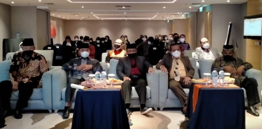 KaltimKita.com, BALIKPAPAN - Rektor Uniba Dr. Isradi Zainal dan Ketua Pembina DWK Dr Rendy Susiswo Ismail didampingi sekretaris yayasan dan sejumlah Dekan menghadiri acara yudisium Fakultas Sastra Universitas Balikpapan yang dilaksanakan di Hotel Four Point Season Balikpapan, Minggu (5/9/2021).